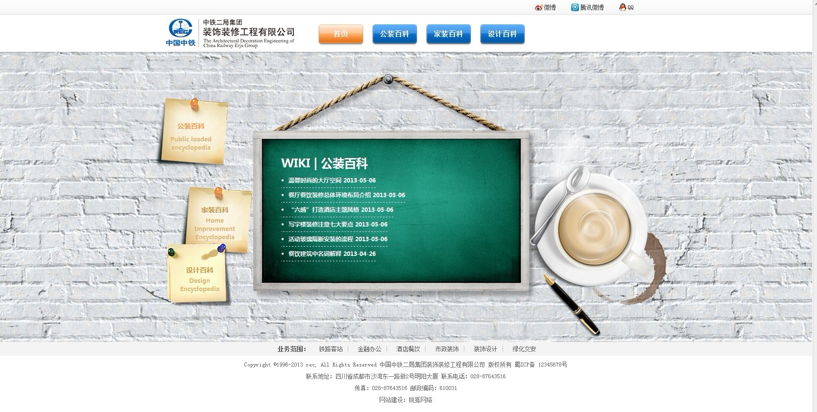 名稱:中鐵二局裝飾裝修工程有限公司 分類:學(xué)校政府 TAG:食品優(yōu)品道新象 VISIT SITE 訪問(wèn)該網(wǎng)站 中鐵二局集團(tuán)裝飾裝修工程有限公司為中鐵二局集團(tuán)有限公司的全資公司,創(chuàng)建于1985年,國(guó)家建筑裝飾裝修施工壹級(jí)企業(yè)、甲級(jí)設(shè)計(jì)單位,注冊(cè)資本金壹億元,年生產(chǎn)能力超過(guò)20億元。 擁