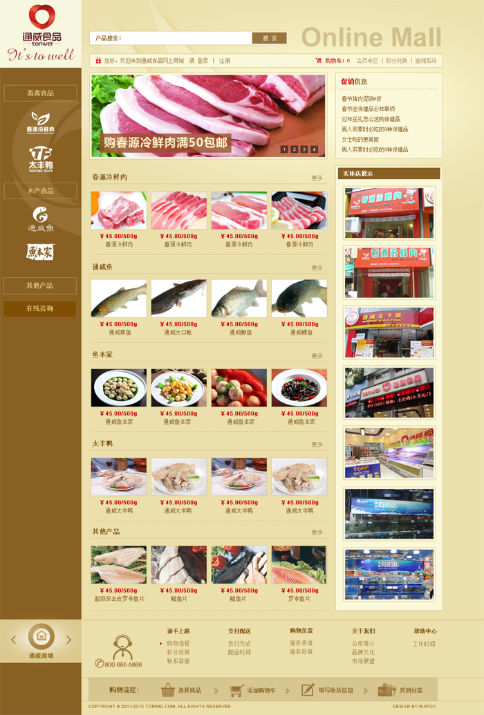 通威食品是大型科技型上市公司通威股份重點(diǎn)打造的食品產(chǎn)業(yè)。企業(yè)網(wǎng)站由四川銳狐網(wǎng)絡(luò)建設(shè),旗下涵蓋成都新太豐農(nóng)業(yè)、成都春源食品、成都水產(chǎn)食品、海南水產(chǎn)食品、成都通威魚、廣東通威魚、巨恒海產(chǎn)品、潤(rùn)兆漁業(yè)、成都三文魚、山東淄博食品等多家大型現(xiàn)代食品加工企業(yè)及銷售公司。主要涉足水產(chǎn)、畜禽兩大食品領(lǐng)域。